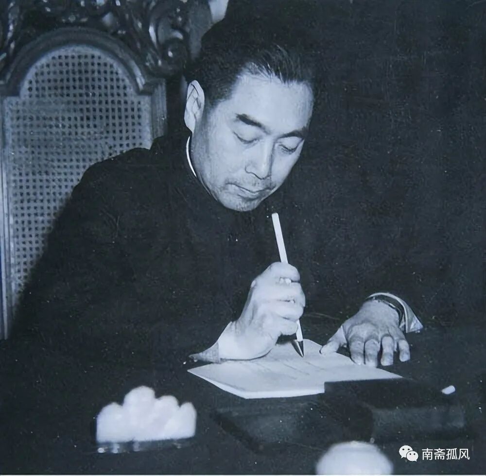 正值政务繁忙时节,周总理独坐在书桌前忙碌着。
