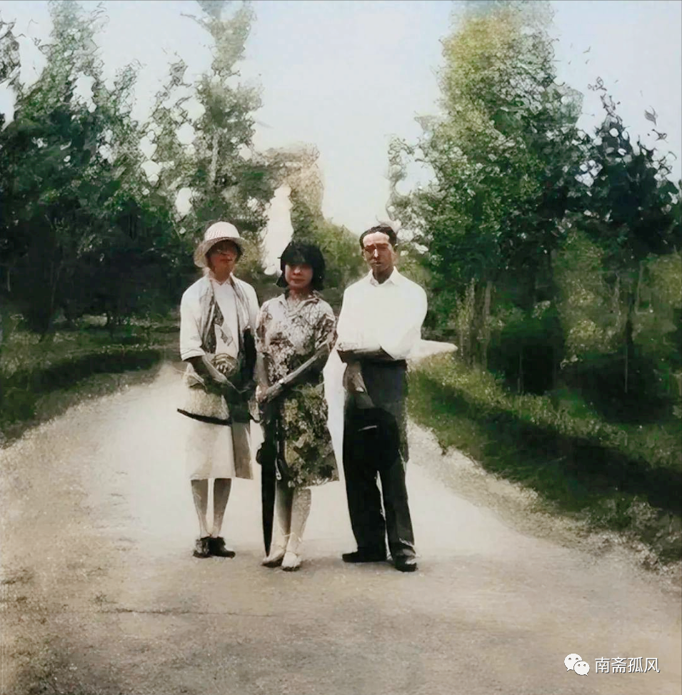 照片中的林徽因,优雅地立于林荫小道旁,一身轻盈长裙勾勒出日渐丰腴的身材。