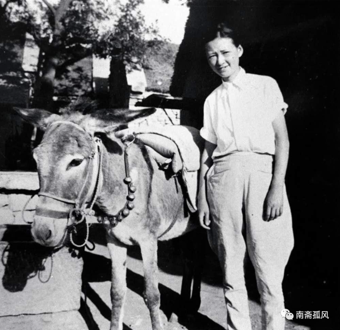 林徽因扶着驴,冲着镜头眯起眼睛笑了笑,美的不可方物。