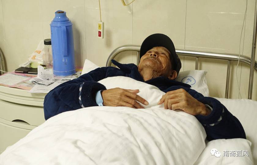 86岁的徐大爷躺在病床上,因为头痛得厉害,脸都皱成了一团。