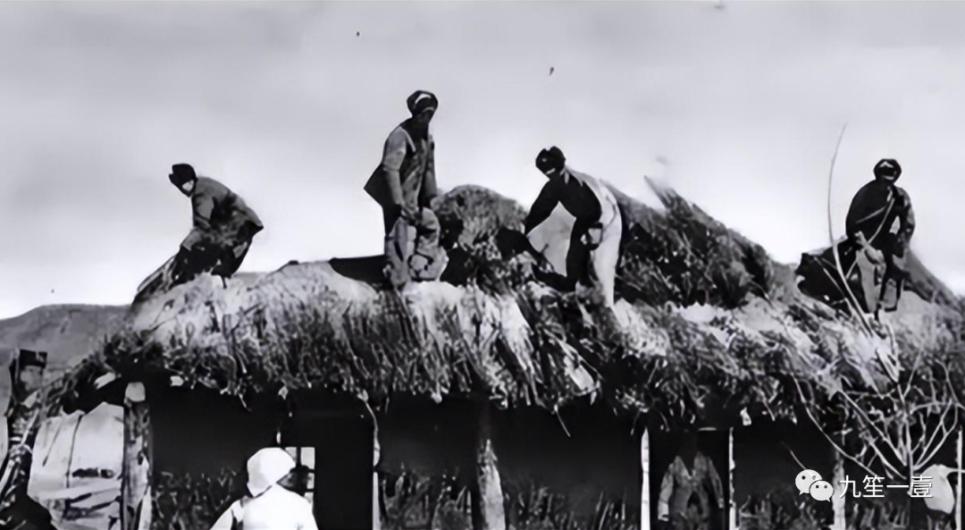1958年一个破晓,杨勇将军立于帐篷门口,远眺营地里忙碌的身影。