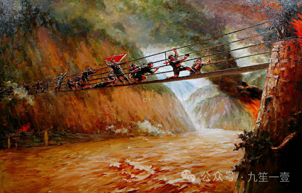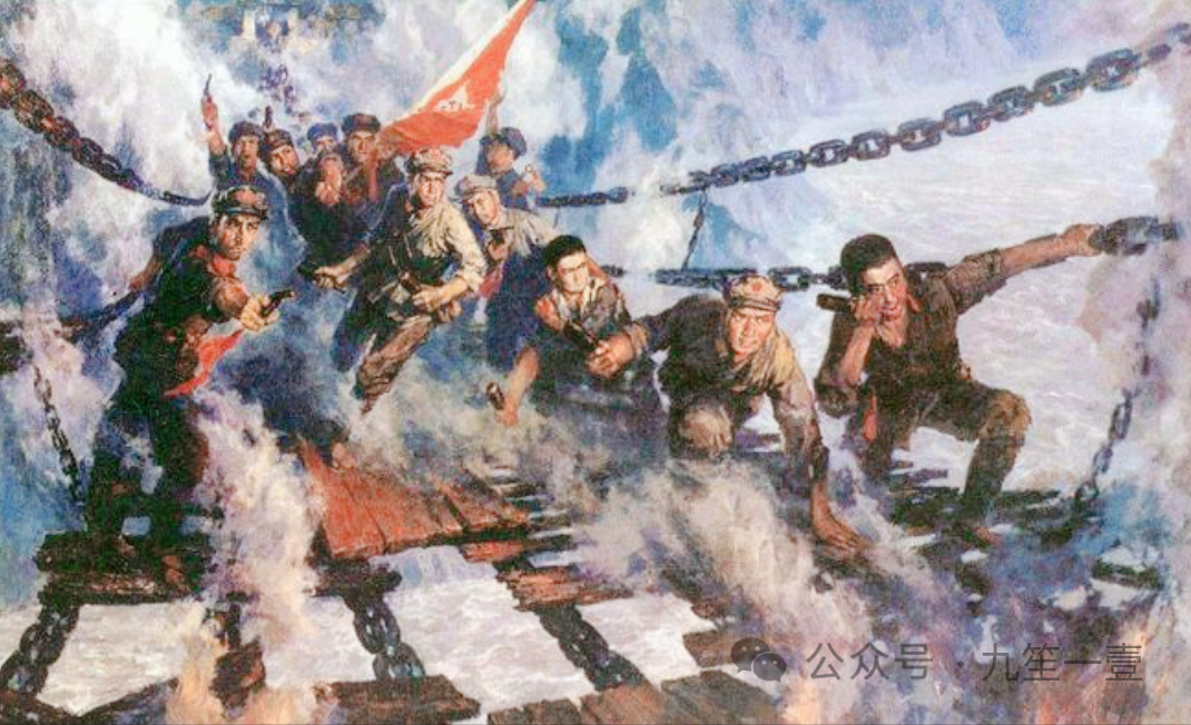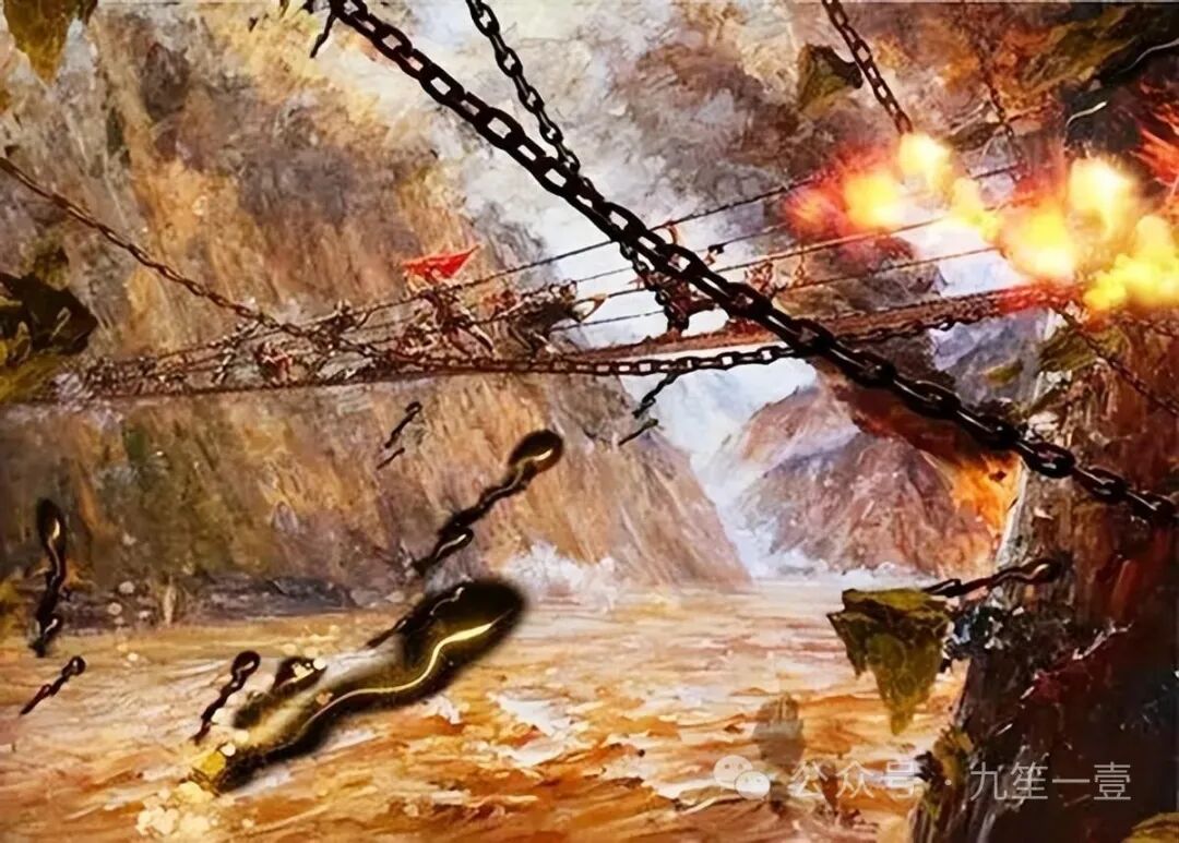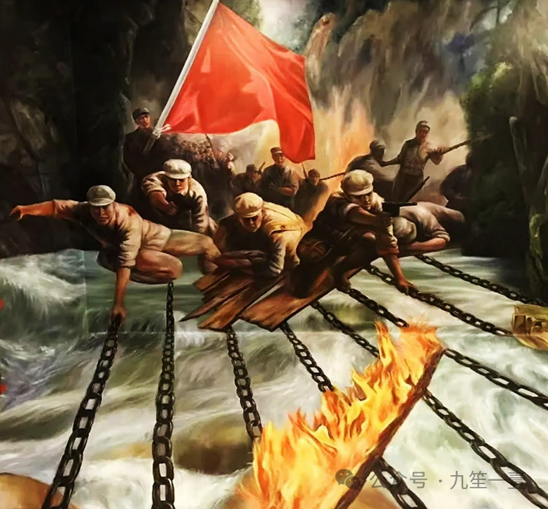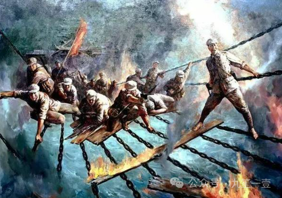 然而此刻,泸定桥木板基座已遭敌军拆毁。