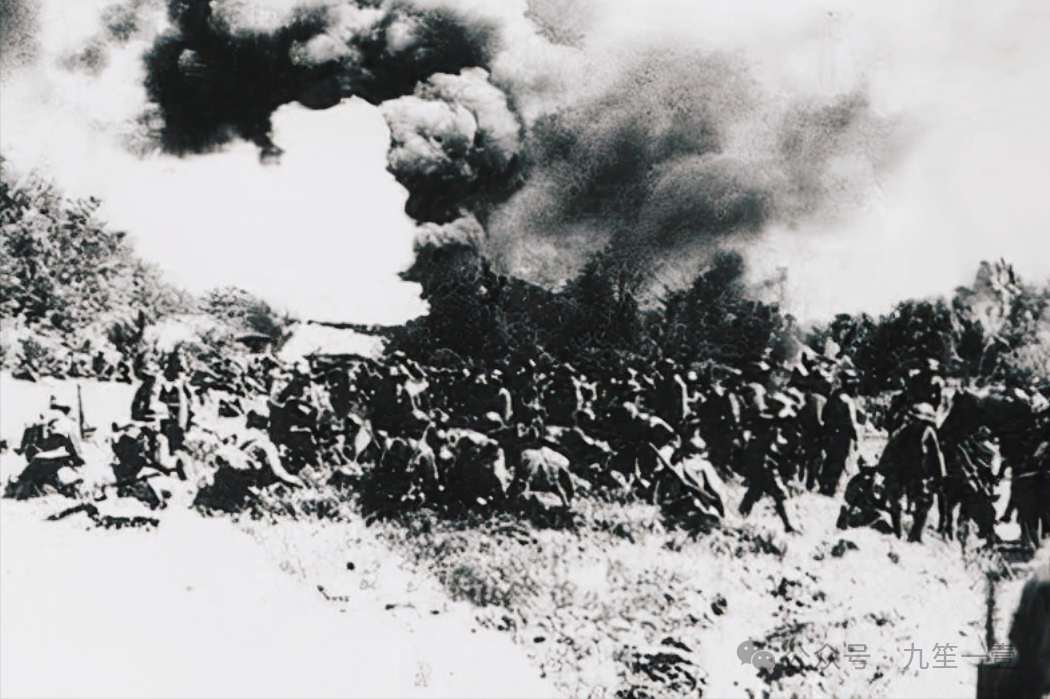 对面的浓烟中,头上蒙着白布条的日军敢死队再次发起了冲锋。