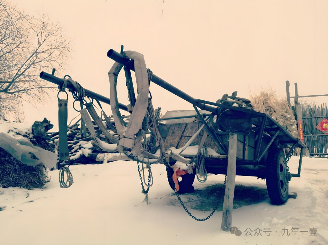 这就是当年人们口中的“毛驴车”或“平板车”,是农村最主要的货运交通工具。