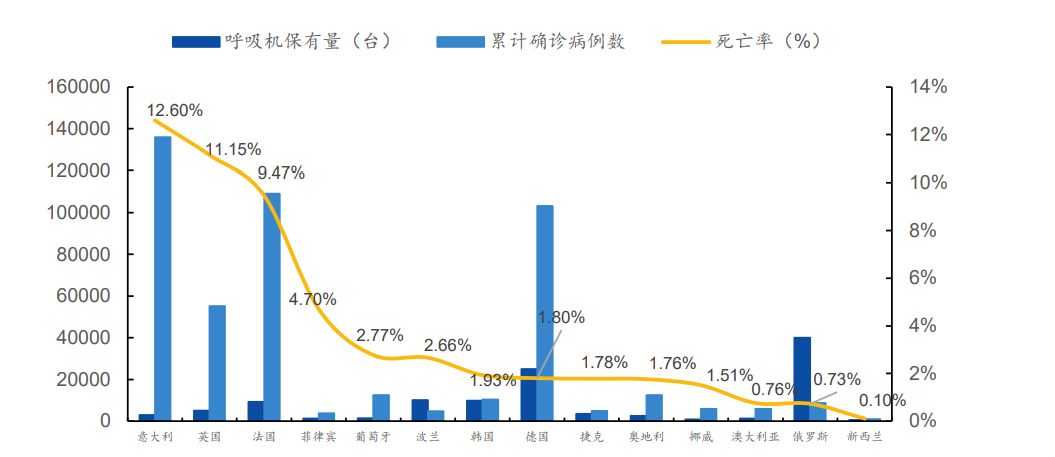 根据西方放开后的数据来看,呼吸机缺口越大的国家,患者死亡率往往越高。
