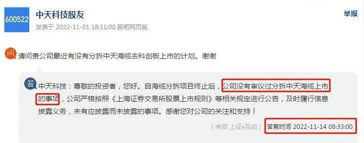 10天前,中天董秘是这么说的。