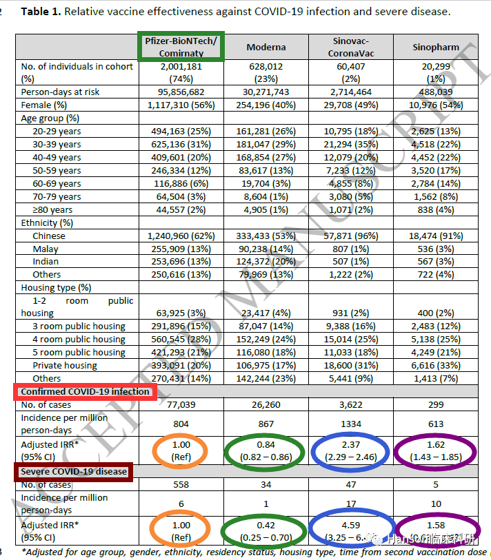 按照新加坡卫生局的研究显示,以辉瑞mRNA疫苗(复必泰)作为参照,接受科兴灭活疫苗治疗的人:被感染的可能性是接受辉瑞公司治疗的人的 2.37 倍;接受国药灭活疫苗的人感染几率是接受辉瑞的人的1.62倍。