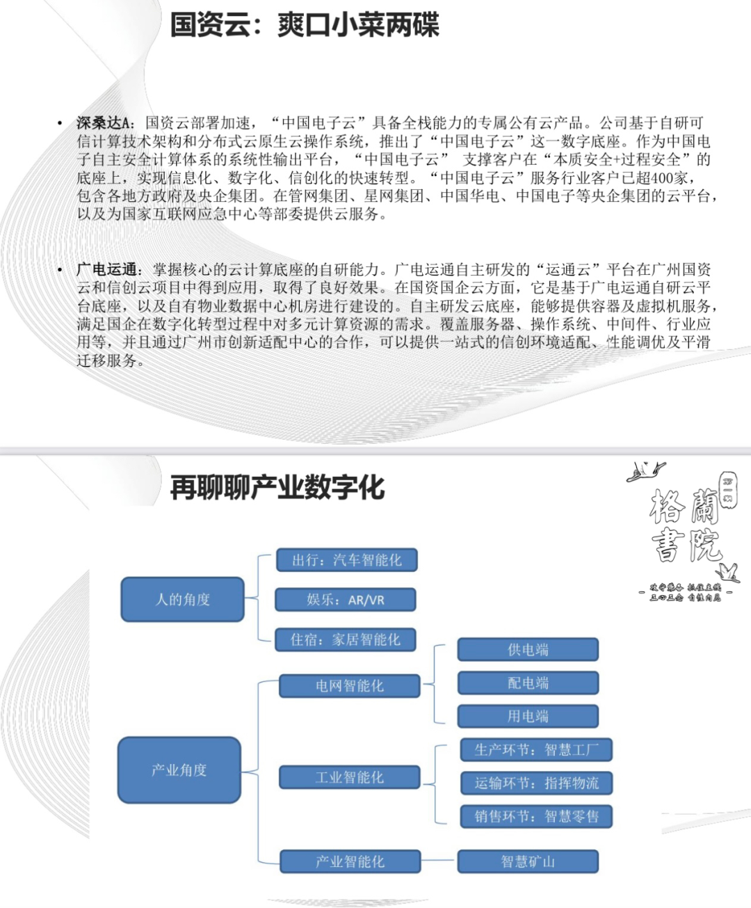 所以我在上周的,【格兰书院】的两个小时的闭门直播课程里,详细拆解了数字经济板块。这是个特别大的概念,以后还会根据板块划分,继续系统讲解。我放一页上周的PPT出来:
