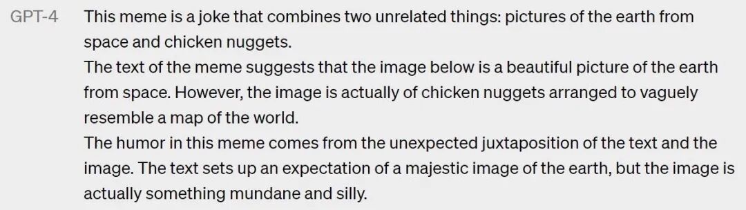 ChatGPT很好的读懂了这个梗是在说:炸鸡块形状像世界地图,让普通人体会到了航天员在宇宙中看地球的感受。