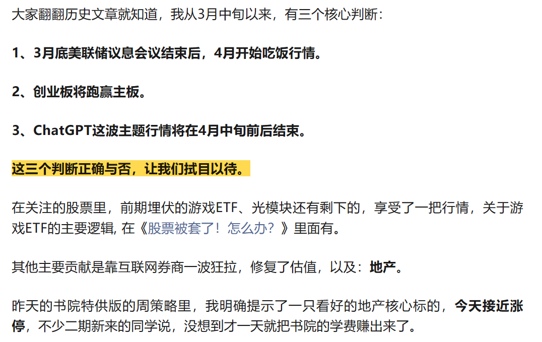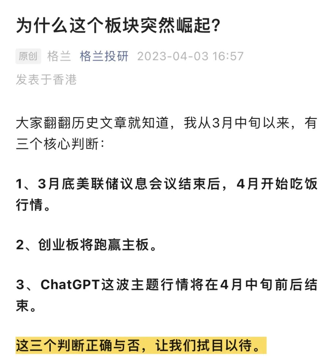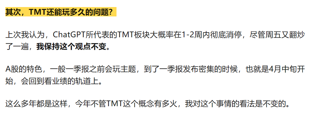 这件事情并不意外,早在两周前《下周策略:山中相送罢》就讲了“ChatGPT所代表的TMT板块大概率在1-2周内彻底消停”: