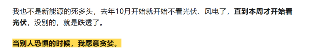 3月底在书院就让同学们着手布局,前几天在《最后的单,谁来结?》“光伏跌透了”、“当别人恐惧的时候,我愿意贪婪”:
