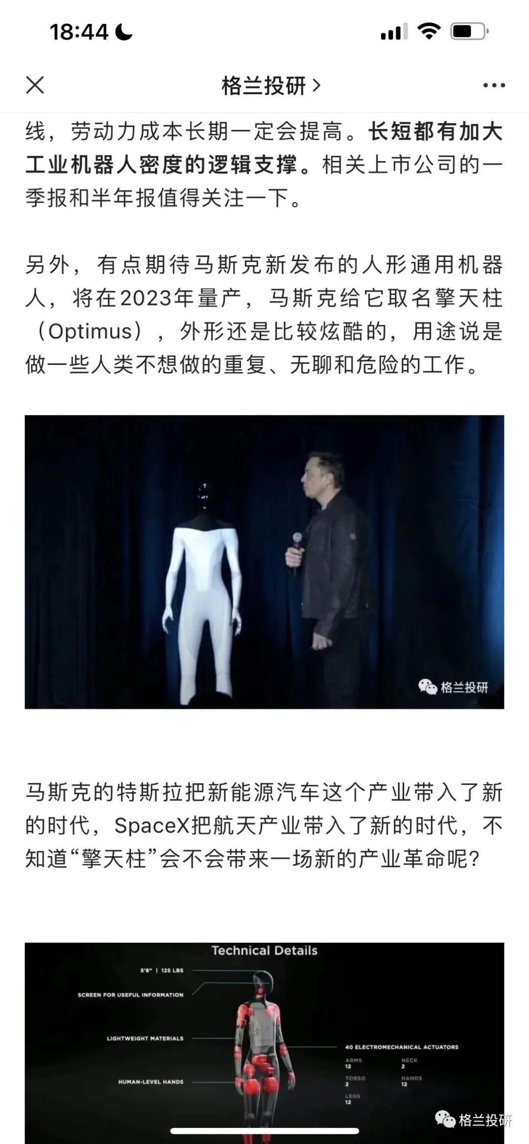 机器人这个话题今天突然热了,但是这个对于咱们的读者是非常不陌生了。早在4月14号就提过特斯拉和机器人的关系。