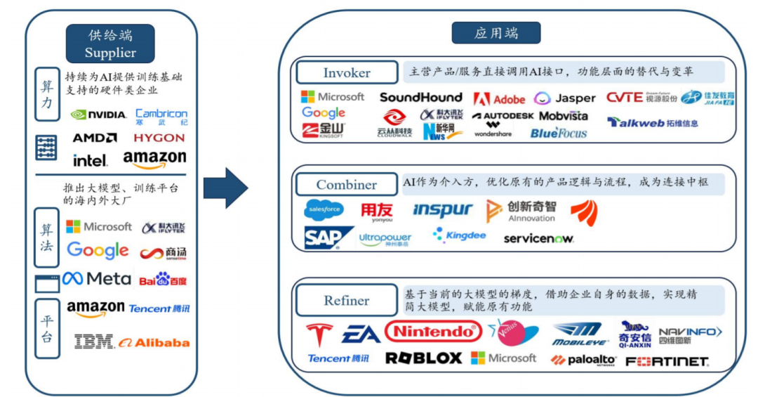 Combiner类企业需要寻找大模型输出与产品某部分功能的契合度,受益时间晚于Invoker。