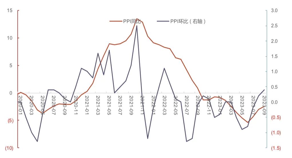 9 月PPI同比增速为-2.5%,上个月是-3%,降幅收窄;环比为0.4%,上个月是0.2%,涨幅扩大。