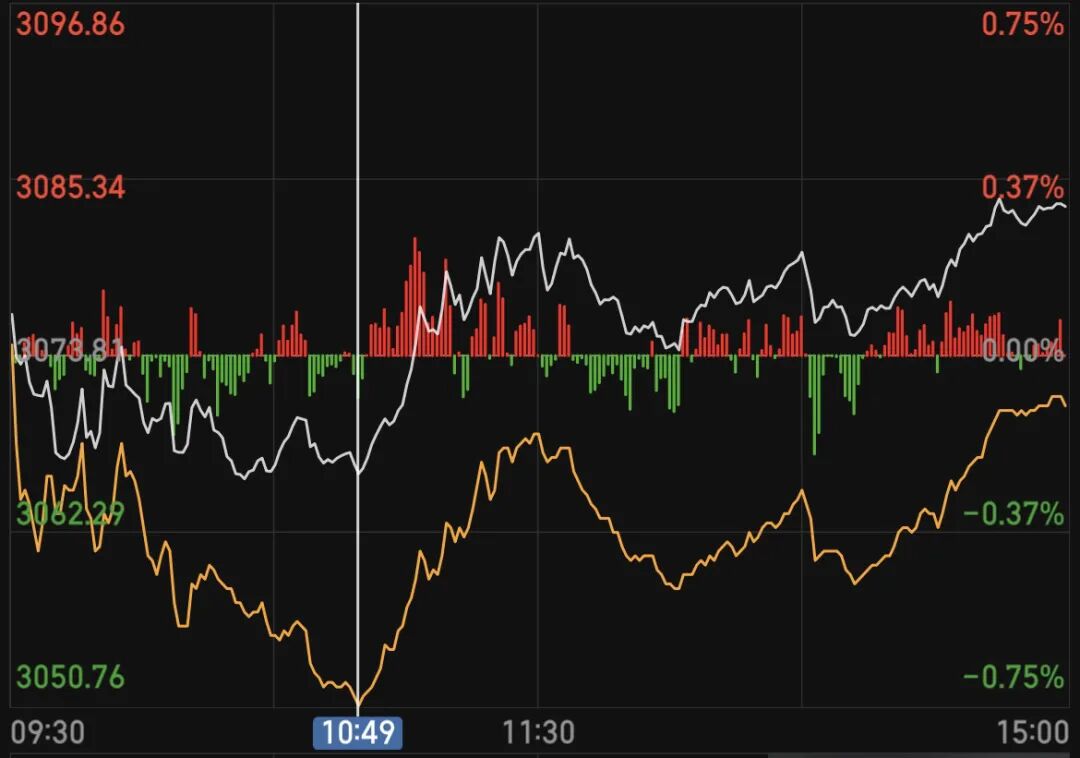 今天黄线已经碰到了,白线还得再等等。
