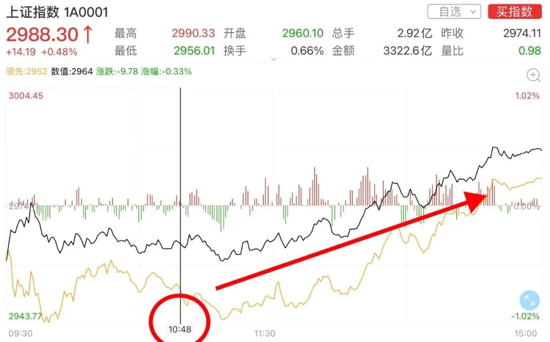 并且速度一定要快,这两天行情不错,已经出现修复情绪的苗头。现在2988.3点,离3000点就差临门一脚,如果伸个脚也要拖很久,那再起情绪就非常困难了。