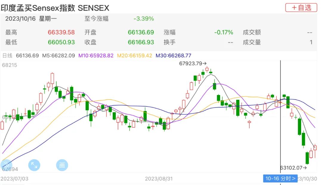 我写那篇文章的那天是10月16日,如果真的听一些不负责任的言论,把在底部的A股全割了买印度股票,等待你的将是狠狠的几根大绿棒子。