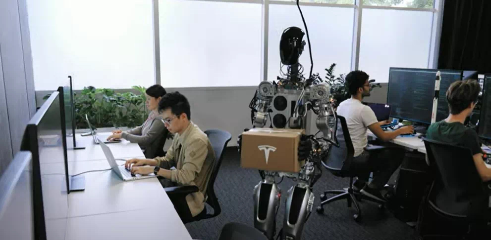 这个段子自以为很聪明,嘲讽到位了。结果昨天特斯拉把机器人用几个人抬上来的时候,长这样。
