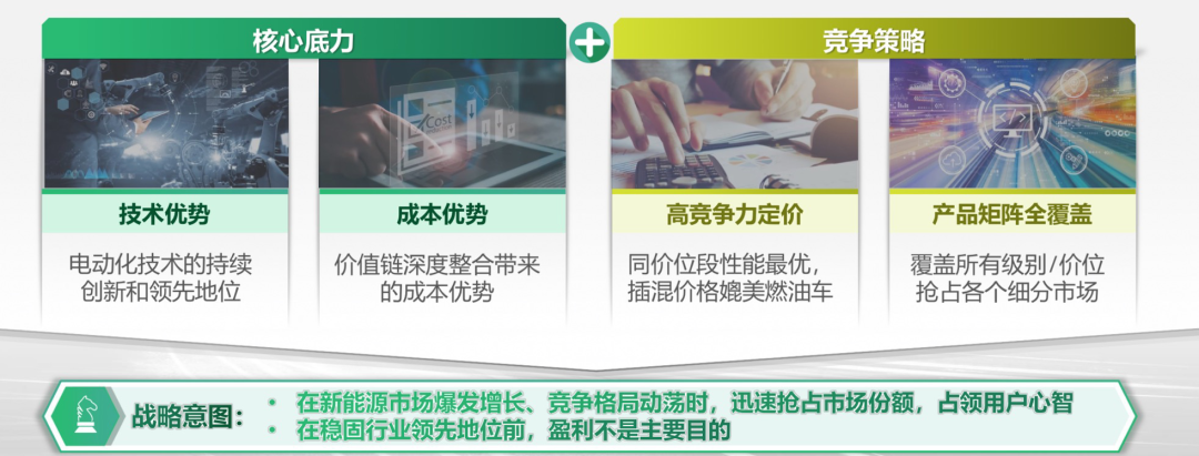 从竞争战略方面,比亚迪是这么做的。