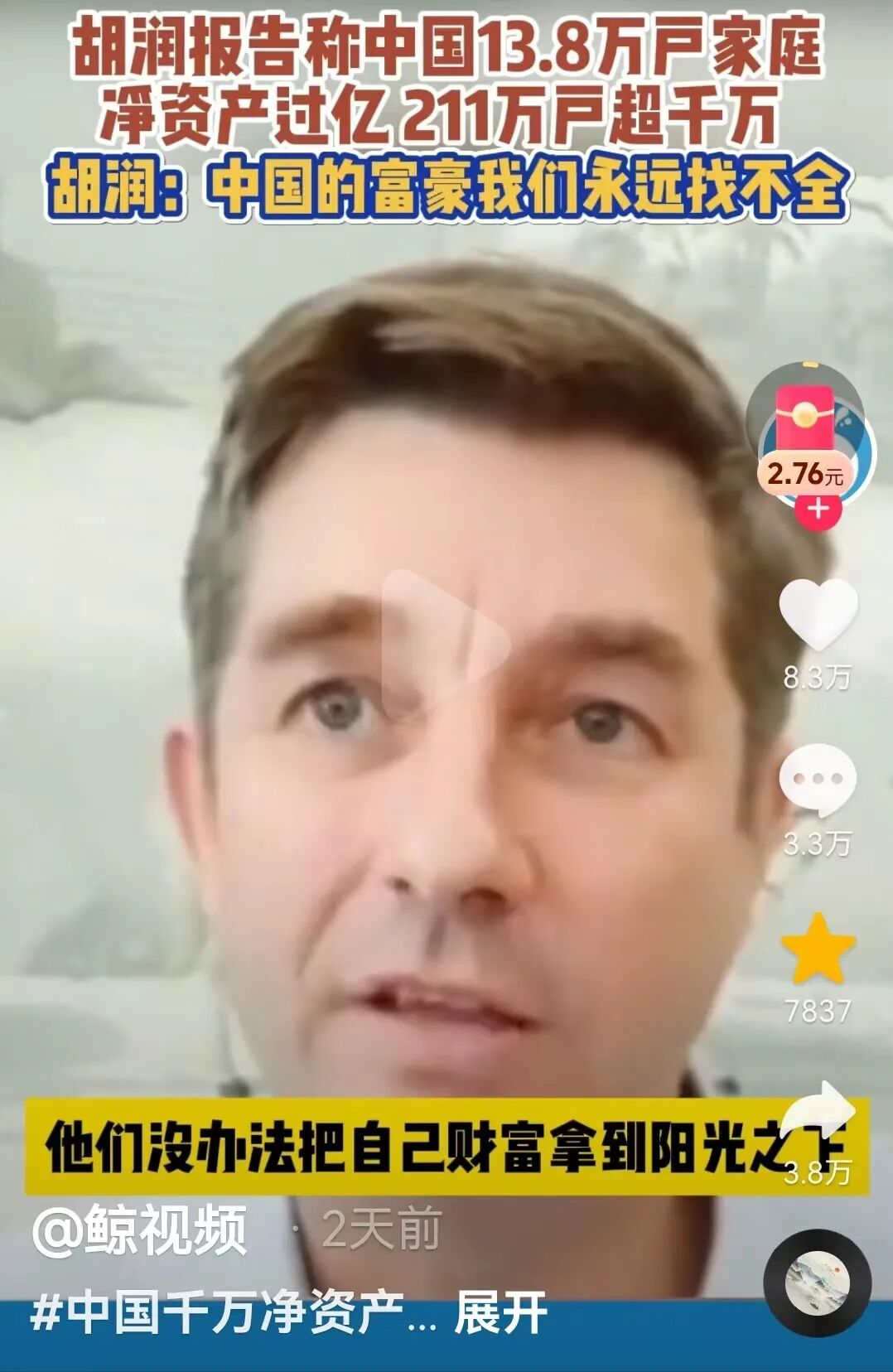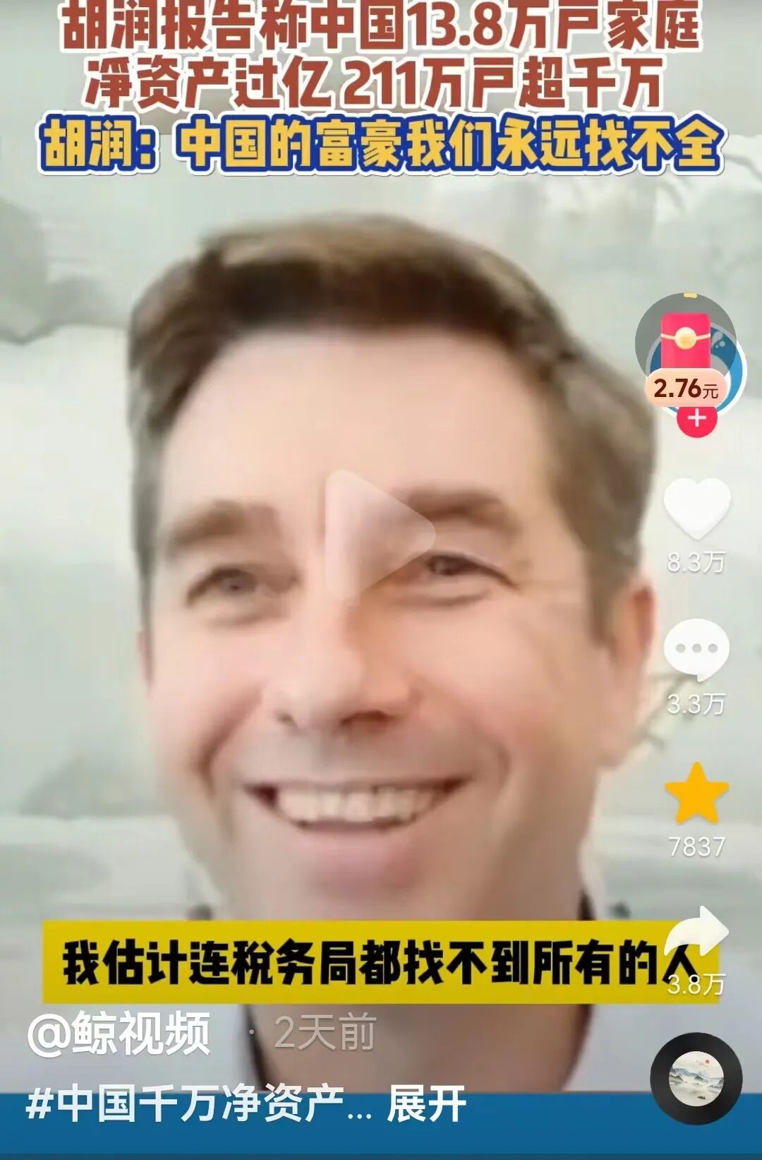 嗯,也没必要,我估计连税务局都找不到所有的人。各种原因,他们没办法把自己的财富拿到阳光之下,这4000多个人都算隐形富豪。我们鼓励阳光之下的财富创造。