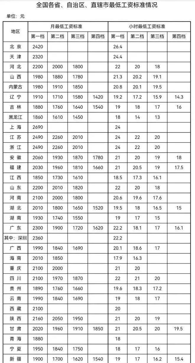 再对比查看各地区最低工资数据,例如内蒙最低只有1850,可是呼和浩特23年社保基数是7469。