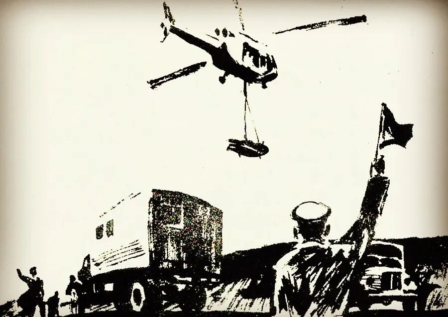 4,15日晚,搜索部队又得到报告一个牧羊人看到天上掉下一个东西。在附近发现了一个椭圆形金属物体,它的长、高、宽均1.5米左右,下部有短而粗的“脚”,还有一个反推力制动装置,上部有扇紧闭着的门。