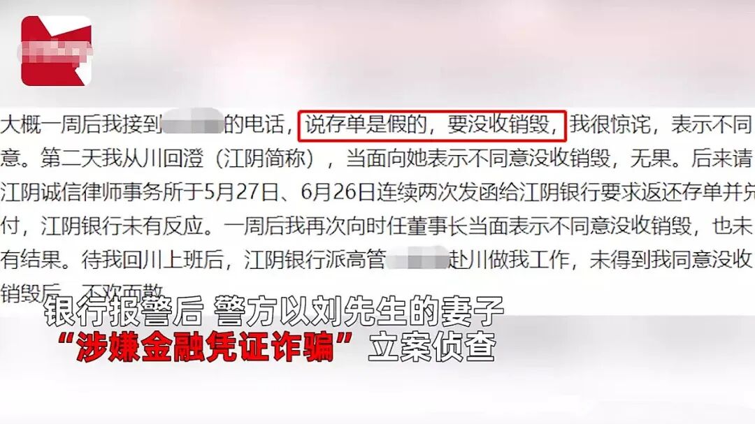 令刘先生没想到的是,就在他们正想办法处理此事之时,银行方面竟然率先报警,将刘先生的妻子以“涉嫌金融凭证诈骗”立案侦查。于是刘先生也将银行起诉至法院,要求银行支付600万元本金及202万余元利息,但最终被法院驳回。