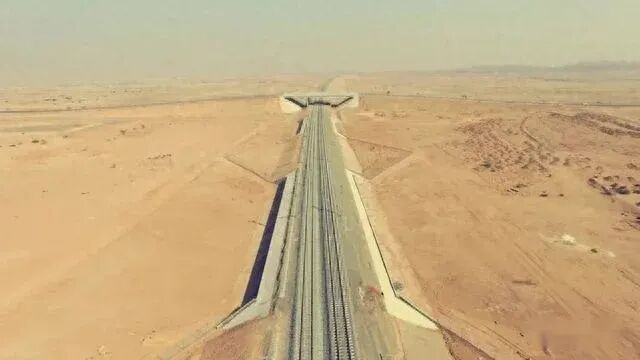 施工团队遇到的第二个问题是流沙。沙特沙漠里的沙子都非常的细,风一吹就会起沙尘暴,环境相当的恶劣。危害最大是移动的沙丘,如果不阻止这些到处跑的沙丘,那么高铁的铁轨都会被沙子掩埋。