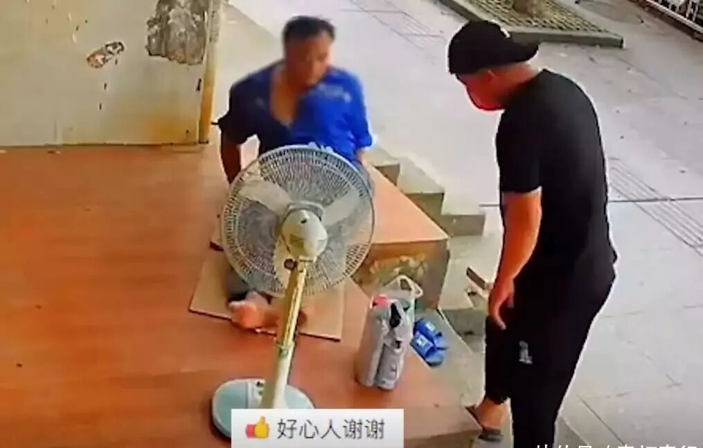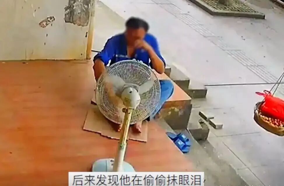 不过大叔因为不想给别人带来麻烦,就摆摆手说躺在外面比较凉快。店主见状也不勉强,直接走进店里。但是不一会儿店主又出来了,而且手上还拿着一台风扇让大叔凉爽一点。从监控里可以看到,在店主返回店内后,大叔立马被感动得偷偷抹着眼泪。