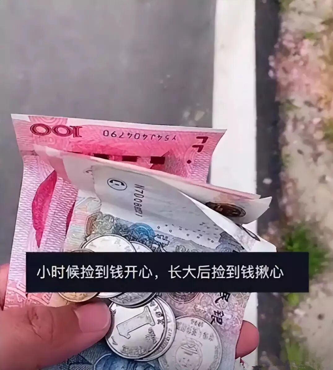 近日,江苏苏州一名女子在买菜回家的路上,发现了一些用透明袋子装着的现金。女子心里既惊讶又兴奋,觉得自己真是幸运,居然能在这个时候捡到钱。然而,当她仔细看袋子里的东西时,发现里面不仅有整齐的几张百元大钞,还有一张20块和一张10块的纸币,最里面还包裹着几枚硬币。