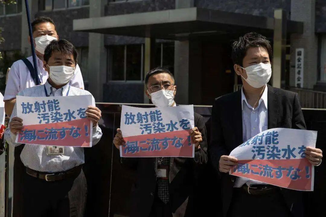 图片展示了岸田政府推动核废水排海时遭到民众抗议和反对。