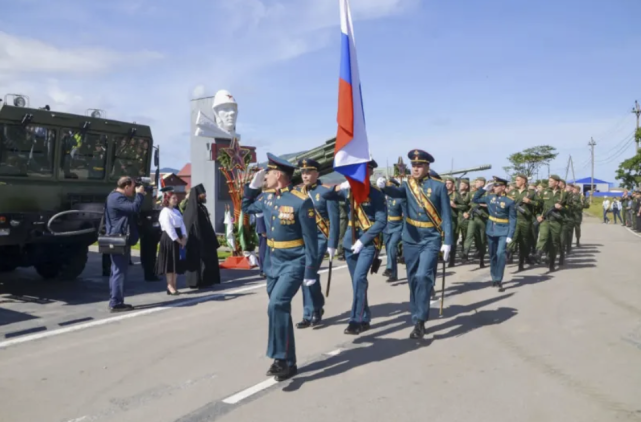图为俄罗斯在北方四岛举行“对日胜利日”纪念仪式。