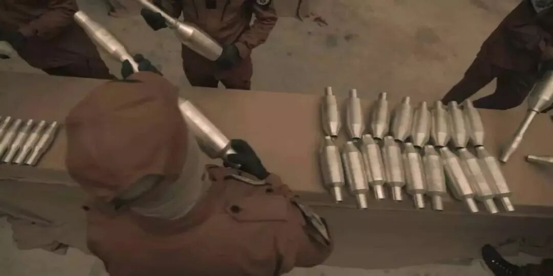 (哈马斯武装正在组装105mm火箭弹)