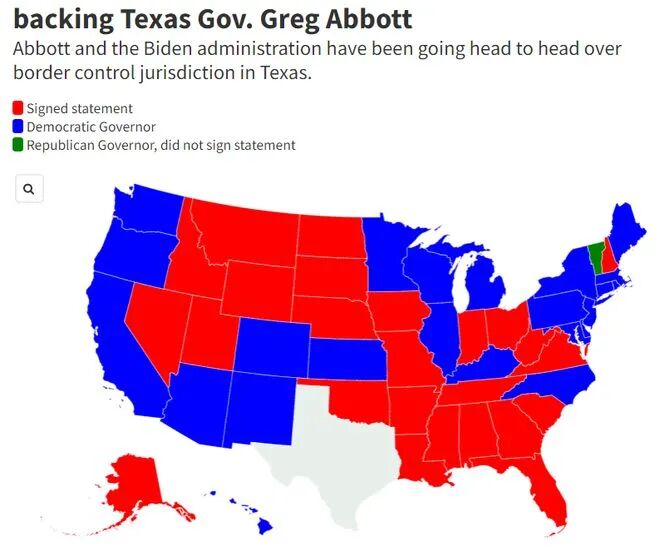 来自以下州的州长签署了支持德克萨斯州州长格雷格·阿博特的声明: