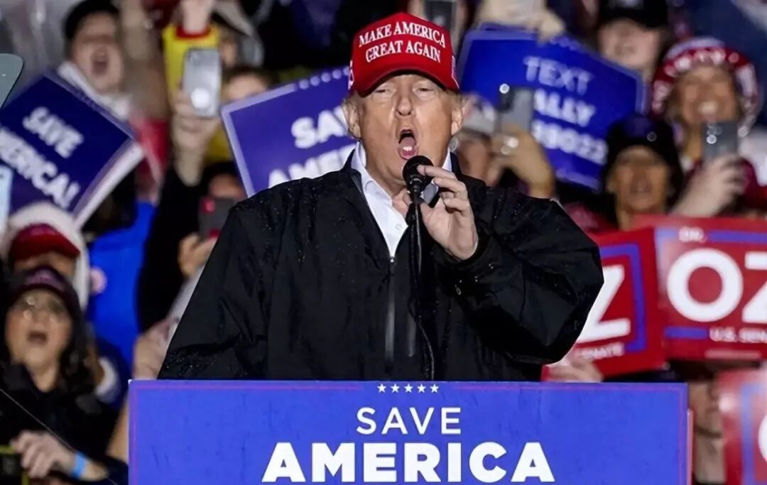 2022 年 5 月 6 日,前总统唐纳德·特朗普在宾夕法尼亚州格林斯堡举行的竞选集会上发表讲话。他身后有大批支持者,戴着红色 MAGA 帽子,再次谈到 2020 年选举结果。