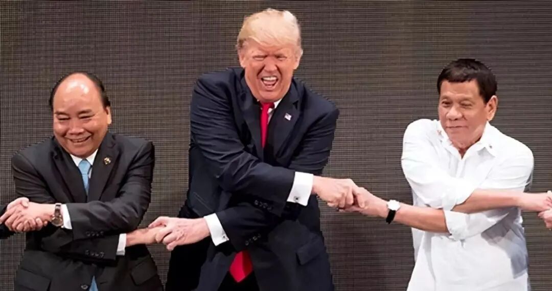 特朗普在与世界领导人握手时做出了可笑的鬼脸,这非常尴尬,这只是人他的搞笑照片中的搞笑表情之一!