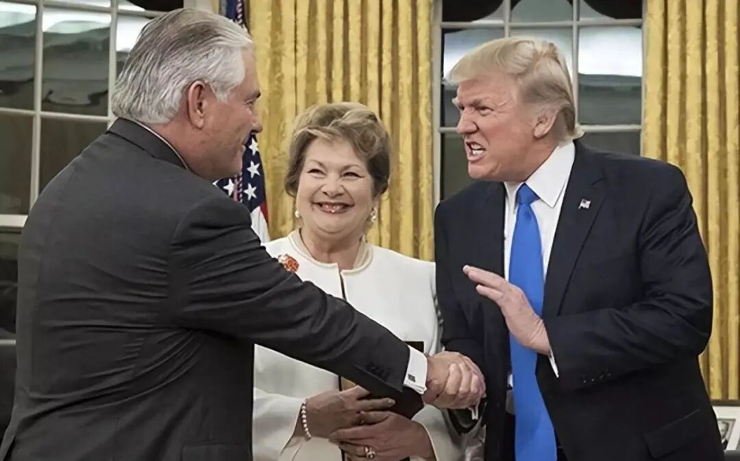 唐纳德·特朗普在会见雷克斯·蒂勒森时表情严肃。这张照片引起了许多粉丝的注意,他们将这张照片发布到了社交媒体上。