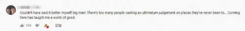 “有太多的人对他们从未去过的地方做终极审判(下最终定论)。来到这里(指马特的视频),我看到了一个美好的世界”。