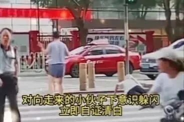 小伙子下意识地躲闪并立即澄清自己与摔倒的老人无关,摊开双手,似乎在向周围的人和司机说:“这个不是我撞的,与我无关。”这一幕让人感到既好笑又可悲。笑的是小伙子夸张的肢体语言,悲的是社会的冷漠和无情。