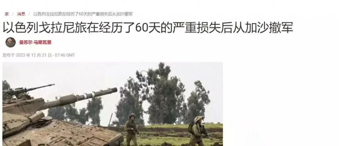 以色列尚未完全占领加沙地带,所控制区域仅占其面积的一半,付出了巨大代价。以军两大王牌部队撤军,暴露了其惨痛的损失。其中戈拉尼旅更是损失惨重,不得不撤出一线进行休整。