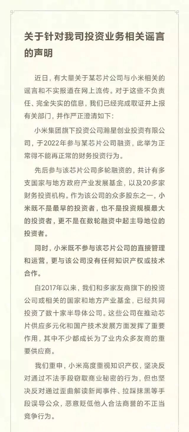 而小米集团也被牵扯其中,尽管只是投资方,但对尊湃公司的业务并无干预权。小米公布的声明中称,公司坚决反对任何形式的技术窃取行为。然而,公众对这一声明却持有不同的看法。有人质疑尊湃与澎湃系统是否真的无关联,也有人质疑小米为何要宣称与尊湃无关联。