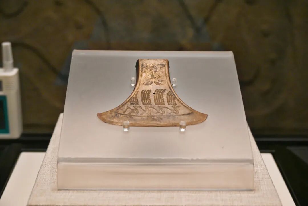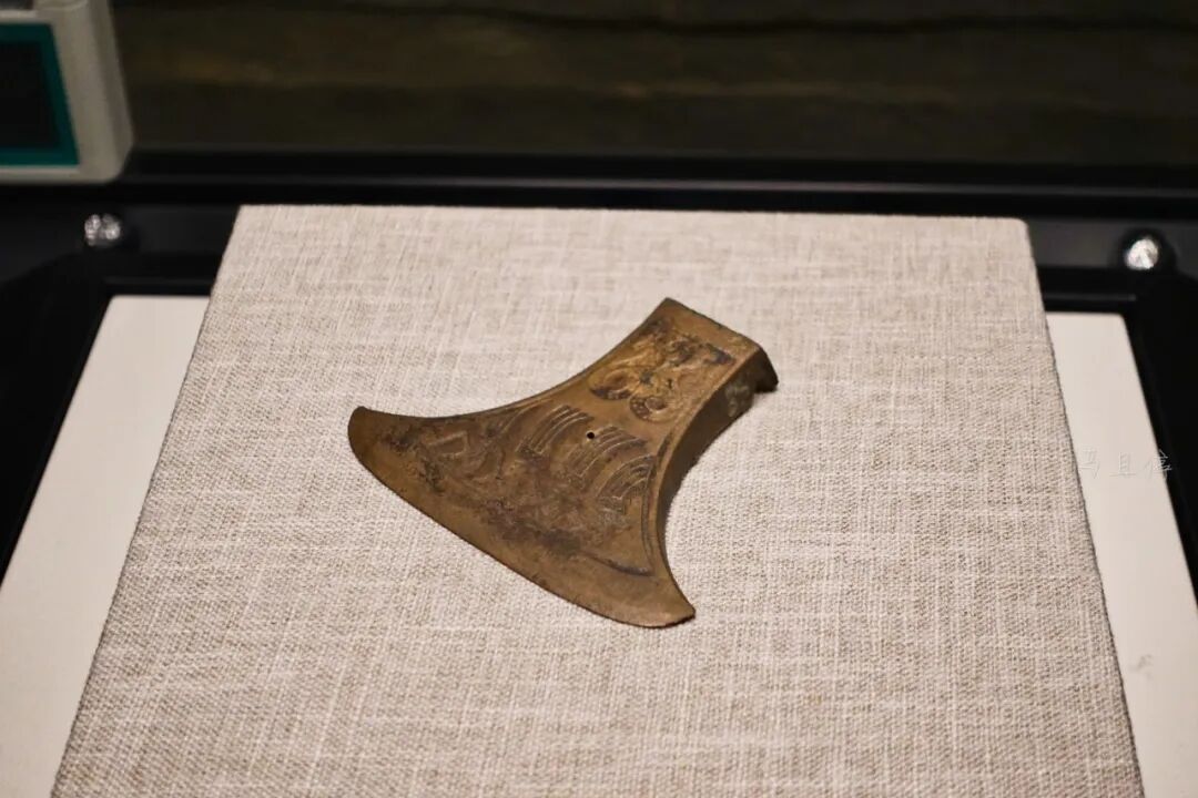 这款高9.8厘米,刃宽12.1厘米的铜钺放在博物馆中不太会让人太注意的器物,因为它看起来不够大,表面的浮雕也不够明显,只能凑近细细看才会发现其中的奥秘。