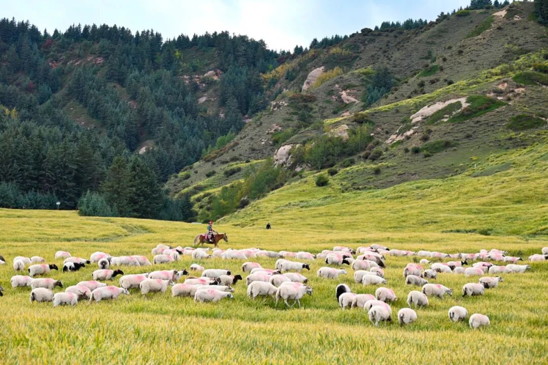 最喜欢的还是肃南的康乐草原,和内蒙平原式的草原不同,这里的草原是连绵起伏的,加上一排排的松木,看起来有点《海蒂爷爷》的电影场景。