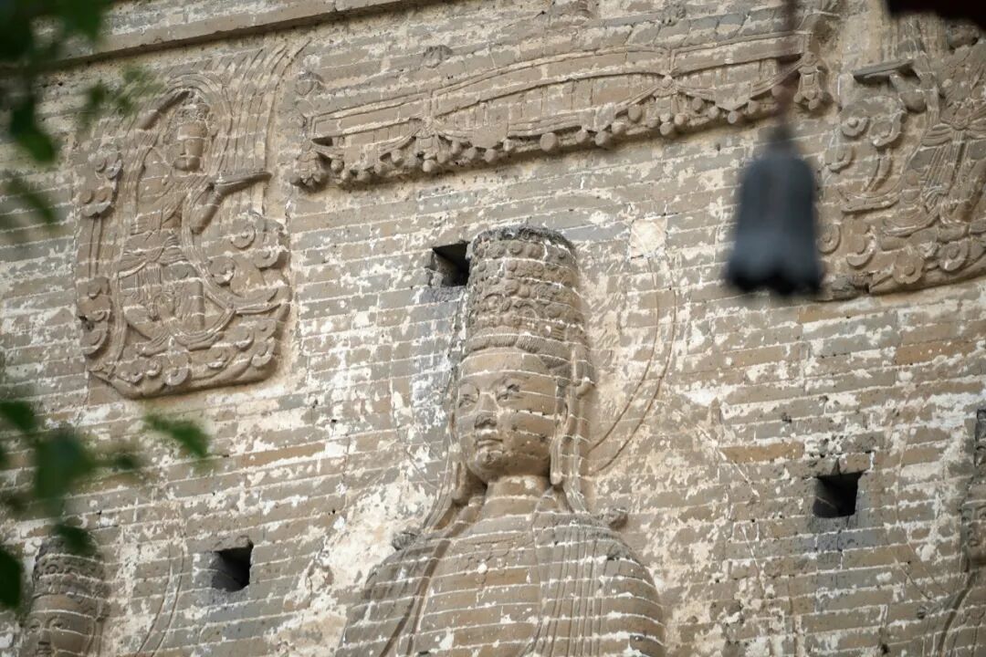 除了四世同体特色之外,整个朝阳北塔的塔身处浮雕同样非常精美,通过当时的工匠在塔身处雕刻出了四方佛、八胁侍菩萨、二十四飞天、八大灵塔等众多内容丰富的图案。