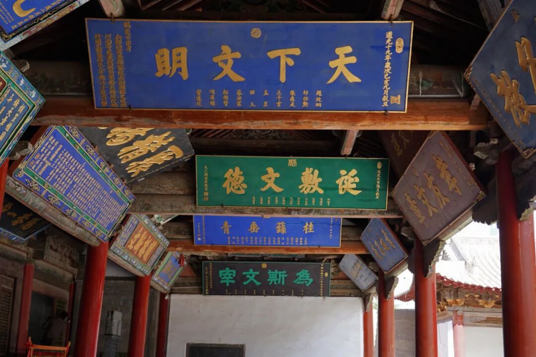 重点可以关注殿前44块历朝历代的牌匾,比如清代官至兵部侍郎、两江总督牛的武威人牛鉴1839年书写的“天下文明”匾,布局简洁匀称,字体清晰醒目大方展示了清代武威文风繁荣的状态。
