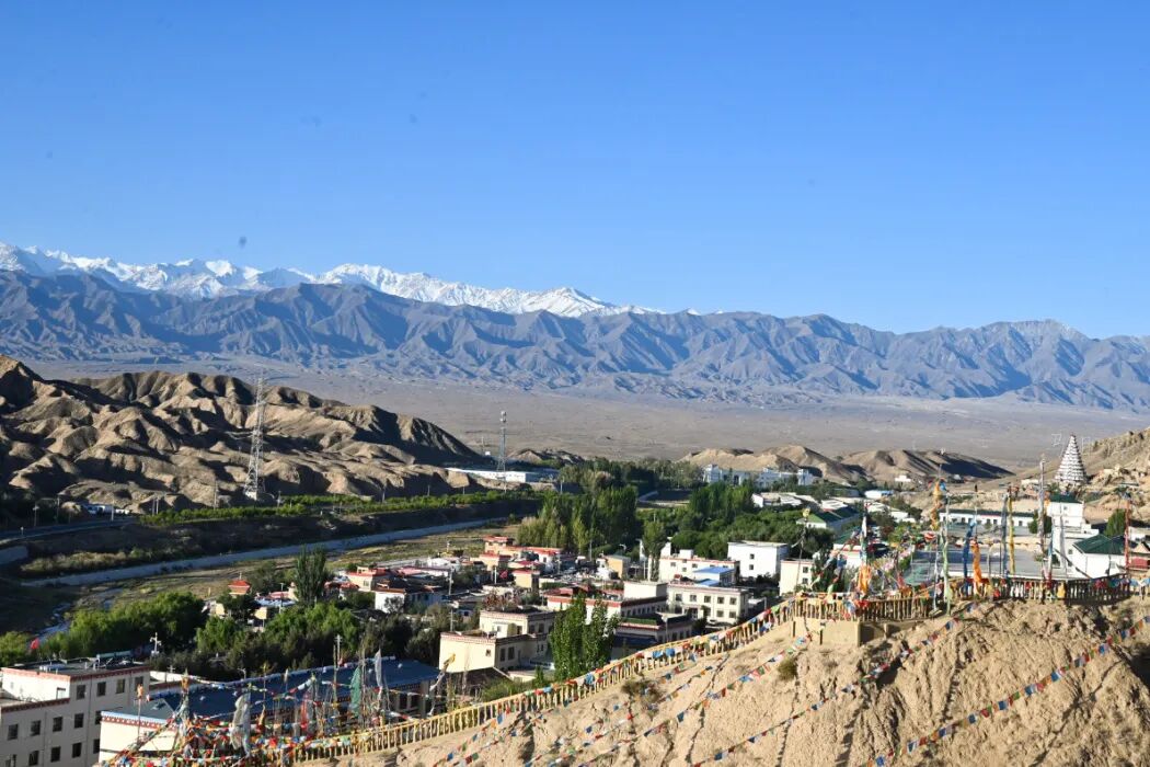 肃南县城在我看来本身就是一个景点,梨园河弯弯曲曲的穿城而过,河的两旁群山环绕,远望可以看到挺拔的雪山,雪山之下是被列入世界吉尼斯纪录的最大转经筒,可以想象得到生活在这里的裕固族人很是惬意。