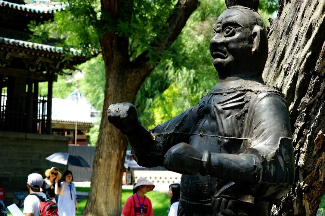 四尊铸像戴冠披甲,体型魅梧壮硕,神采奕奕。当然细心的旅行者不难发现,这就是86版的《西游记》扫塔辨奇冤中鱼精毒害白龙马的场景的拍摄地。