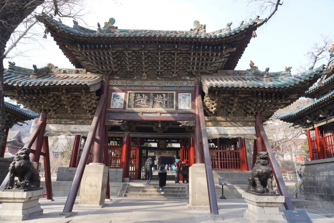 穿过晋祠公园后,就到了晋祠的核心景区,一座单檐歇山顶宫门式建筑屹立在你的眼前,红色的墙,灰色的瓦,简单的修饰就形成了大门。正中悬挂着陈毅元帅1959年题写的“晋祠”二字。