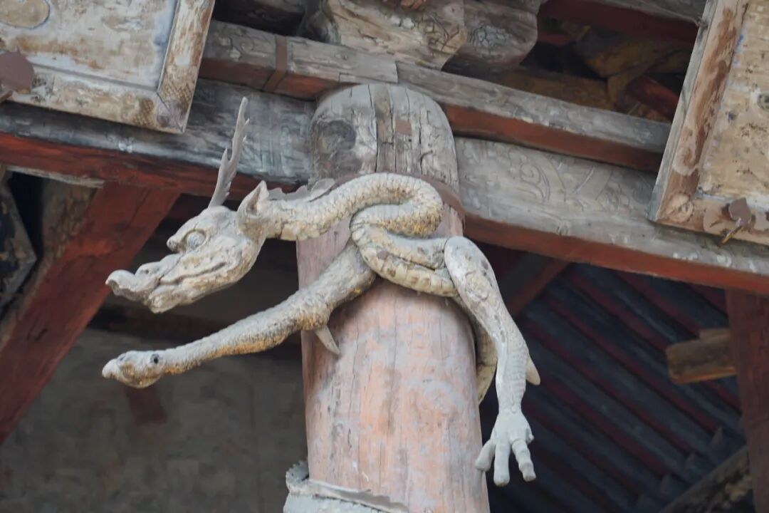 始建于北宋天圣年间的圣母殿,是晋祠内最古老的建筑之一,高19米,雕花脊兽殿前廊柱前雕刻者8条栩栩如生的中国龙。