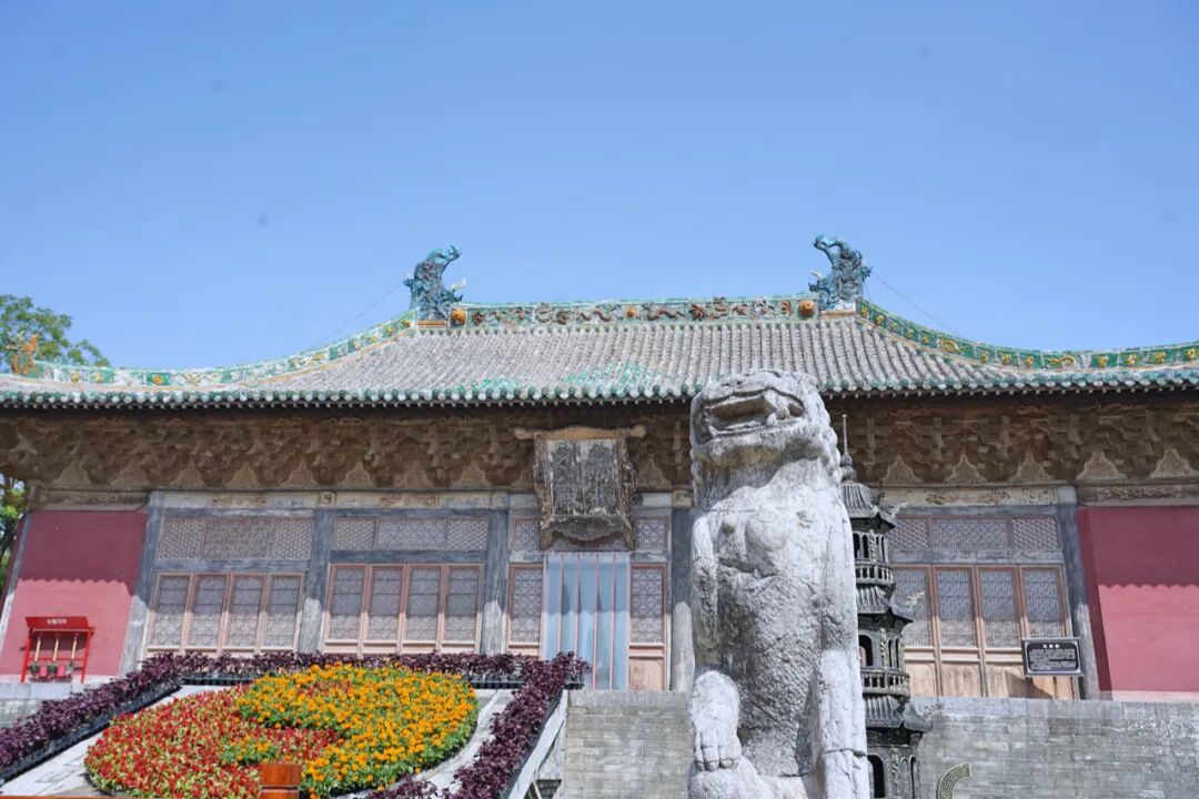 在观赏庙中我看到了康熙、乾隆、咸丰三位皇帝亲笔的匾额;在“气肃春秋”坊上我看到了精美的葫芦和凤吻琉璃构件;在正殿崇宁殿的殿前我看到了26根巨大石雕龙柱非常有气势。